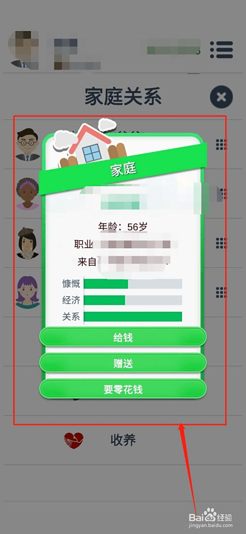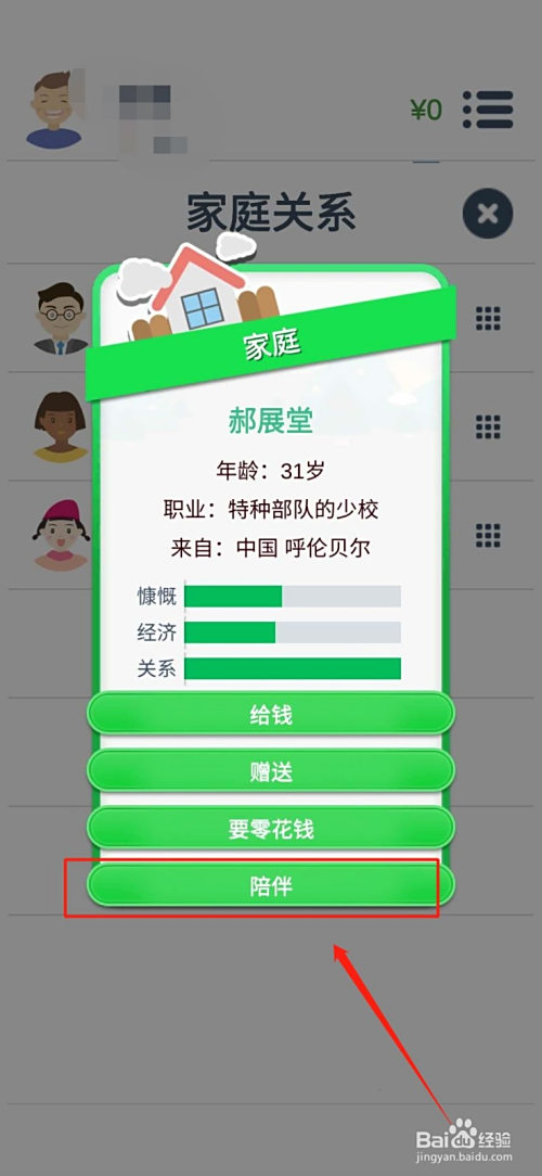 进入与怙恃的互动界面后,点击第四行的“陪同”,如图。