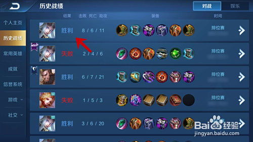 点击后,界面显示出我们的汗青战绩,选择一个我们想查看的对局