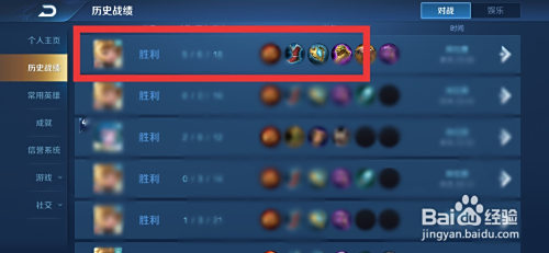 1.找到战绩,想查看的一局进入。