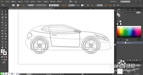 利用钢笔东西画出红色轿车的正面细节,包罗车门的表里布局,车窗上面的玻璃色彩转变,车轮的表里分歧色彩区域,紧随后画出前车灯与后车灯的分歧色彩结果。