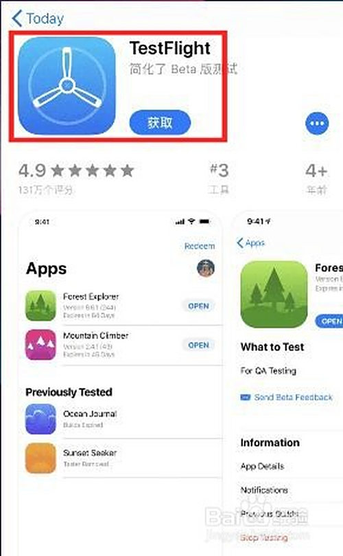 我们以链接安装为例,来看看具体安装步调,点击开辟者的公开链接,先从App Store中获取、安装testflight