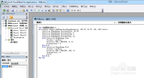 5.在VBA编纂界面,写入指定的VBA代码,然后点击封闭按钮。