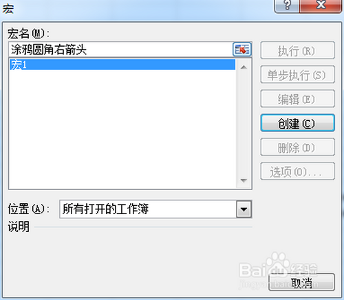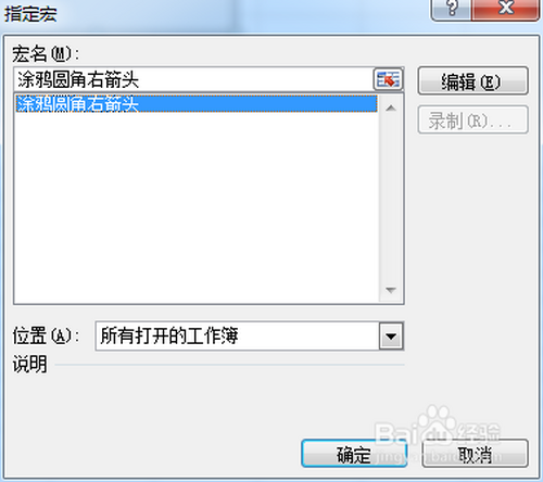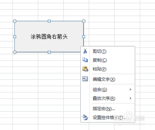 7.将按钮控件定名为“涂鸦圆角右箭头”,然后点击右键,选择“指定宏”选项。