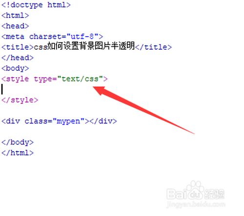 在test.html文件内,设置div标签的class属性为mypen,本家儿要用于下面设置样式。
