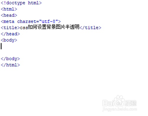 新建一个html文件,定名为test.html,用于讲解css若何设置布景图片半透明。