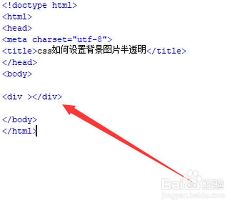 在test.html文件内,利用div标签建立一个模块,下面将给该div设置布景图片。