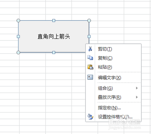 7.选中“直角标的目的上箭头”控件,然后点击鼠标右键,选择“指定宏”。