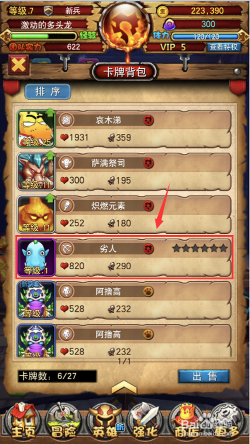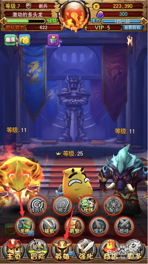 1.点击本家儿菜单英雄,再点击子菜单卡牌按钮,可以查看我们所有的卡牌。