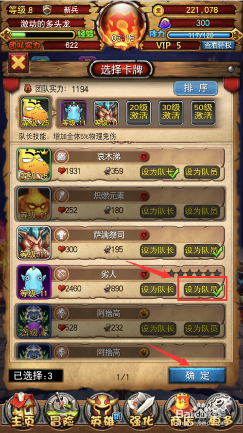 5.点击紫色劣人后面的设为当作员,将其打勾,劣人随即插手步队。然后点击右下角确定按钮完当作操作。