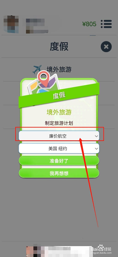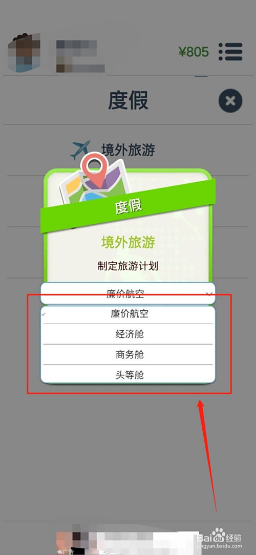 点击第一行的“廉价航空”进行选择,旅游您可以选择出行的交通东西,(分歧的交通东西价钱也是分歧的,好比廉价航空的价钱是最廉价的,甲等舱的价钱是最贵的。)如图。
