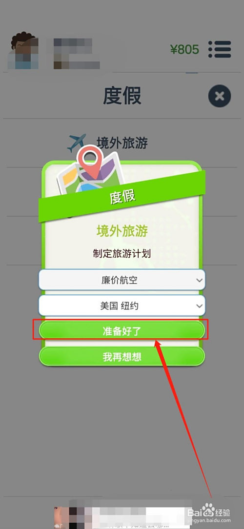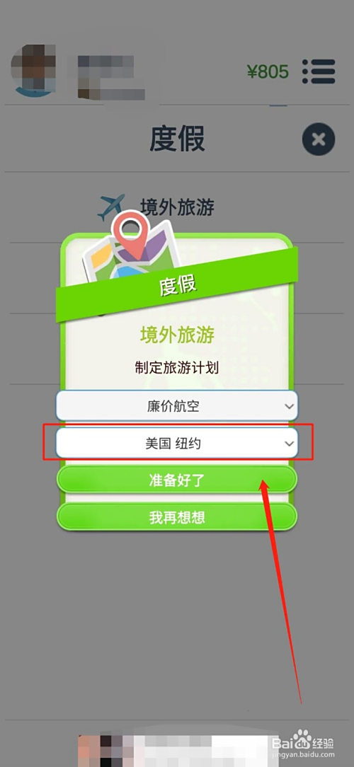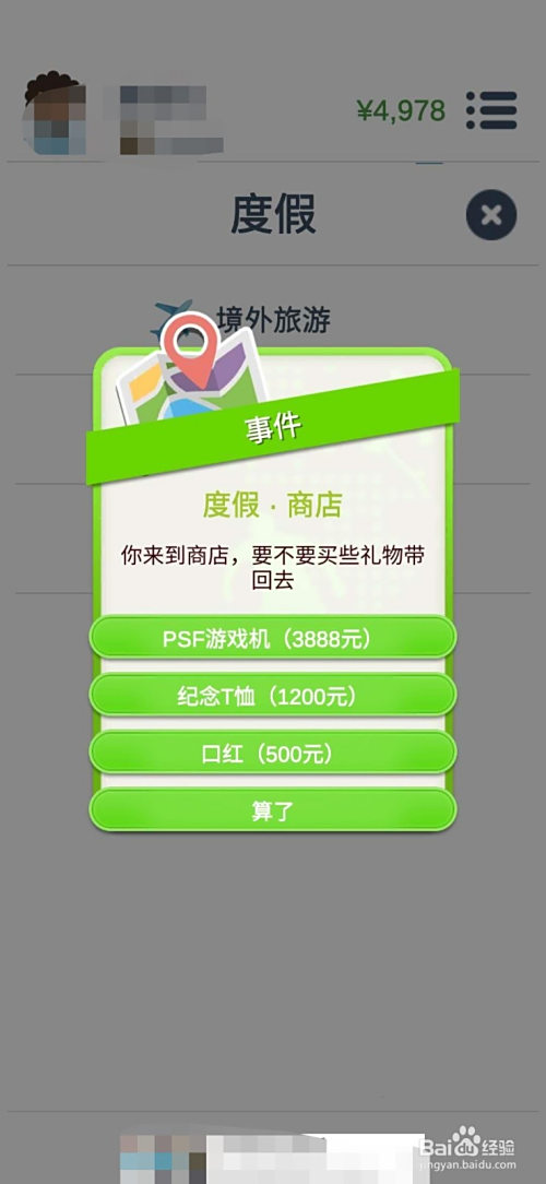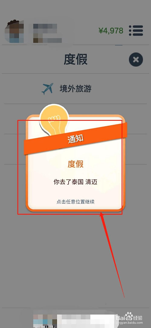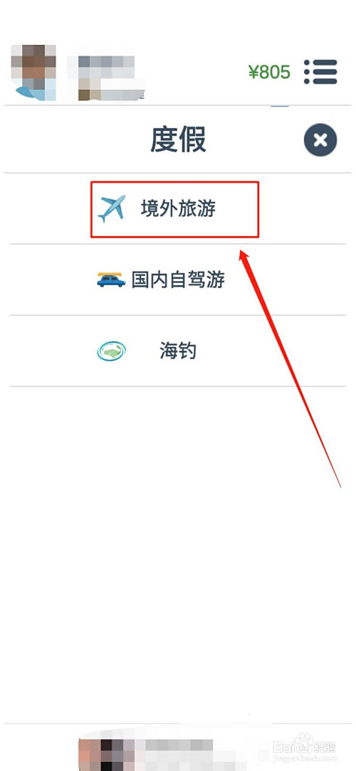 点击“勾当界面”里倒数第二行的“度假”,如图