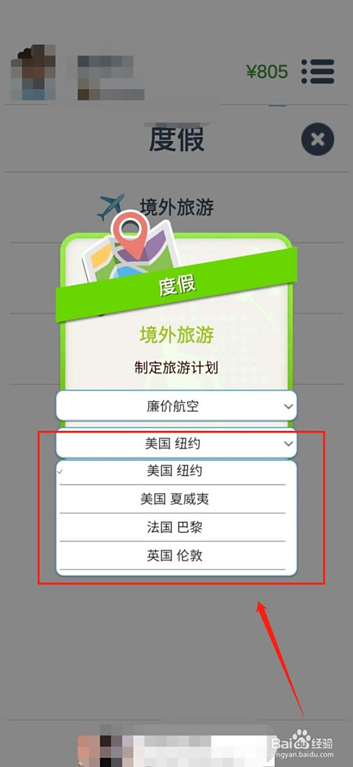 点击第二行的“纽约”进行选择旅游地址。如图。