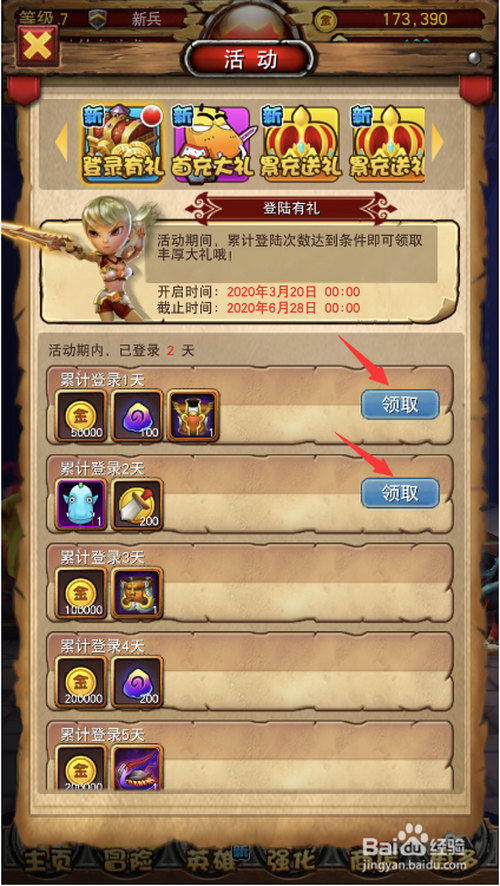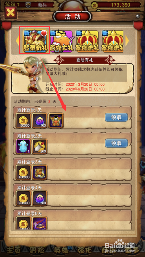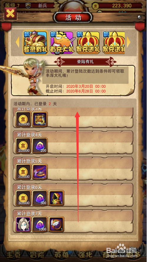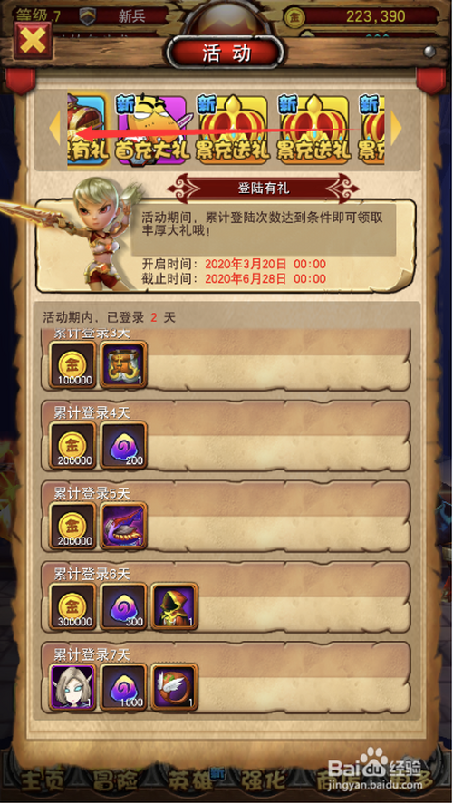 点击上方勾当图标,下面就会显示具体的勾当内容和勾当奖励。