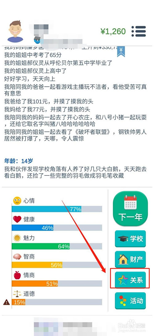 2.点击手机屏幕右下角一列第四行的“关系”