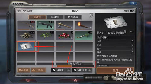 在本身的背包中,点击进修内凹长石斜砌面配方