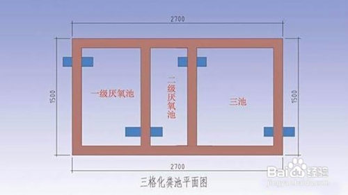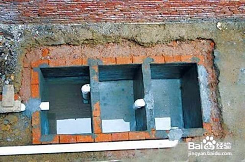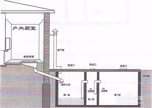 六、水管凹凸的一般划定。第二池和第三池的过粪管都不要跨越墙体高度的四分之三,第二池要低于第一池高于第三池。