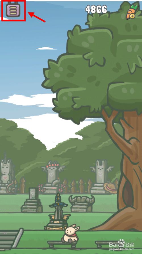 2、点击菜单图标,菜单元于月兔冒险界面左上角,任何场景都可以点击。