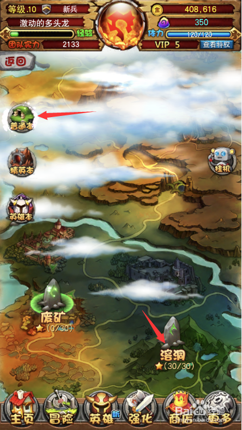 2.点击左侧通俗本,再点击右侧溶洞副本。