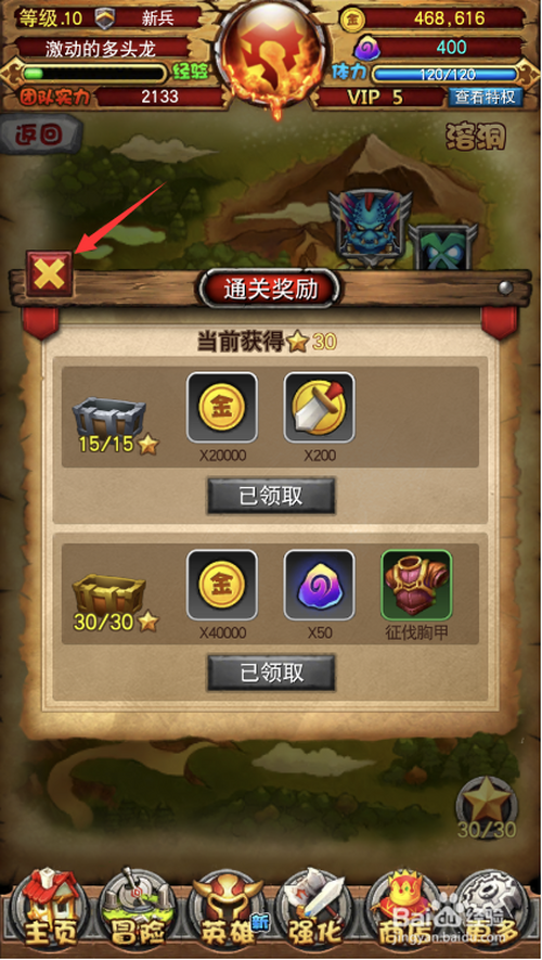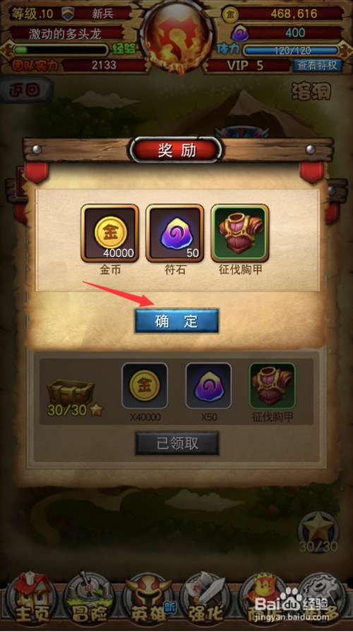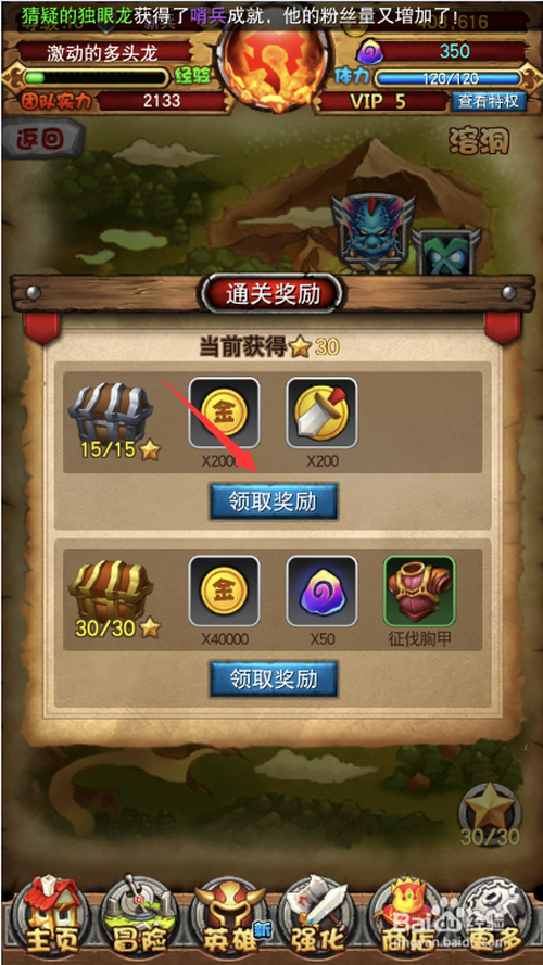 5.完当作本关卡所有星星可以领取下面的奖励,里面包罗符石奖励,点击领取奖励按钮。