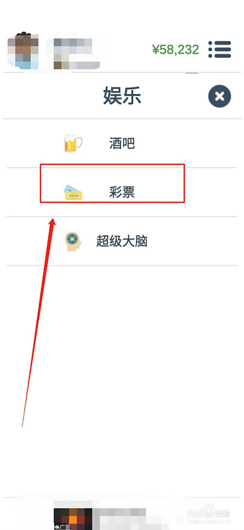 点击“娱乐界面”里第二行的“彩票”,如图
