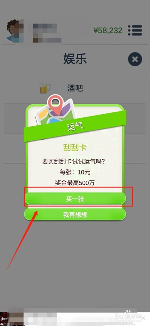 点击“买一张”,如图。