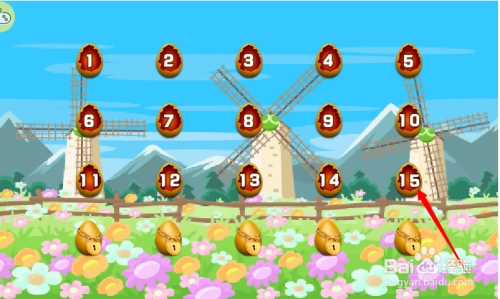 第二步:按照红色箭头,点击第十五关起头游戏。
