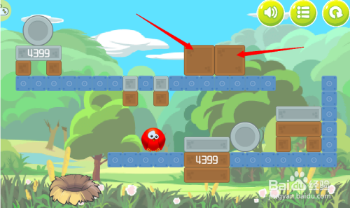 第三步:按照红色箭头,消弭两个小石块下方木块。