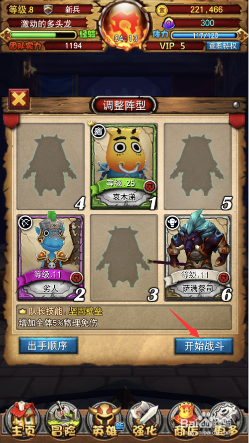 按照下图设置装备摆设声势和出手挨次,治疗6出手比力稳,MT站在前排承担危险。点击起头战斗按钮。