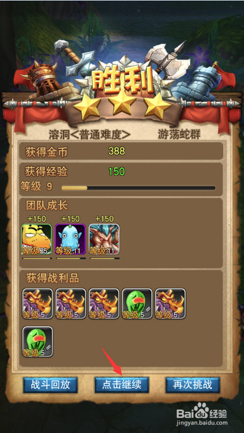 6.通关奖励150点团队经验和卡牌经验,失落落了6张野怪卡可用于本家儿角卡牌快速进级。点击下方点击继续按钮即可分开副本。