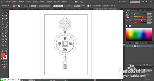 最后,我们用大红色填充吊坠下方的丝状元素,完当作中国结图片设计。