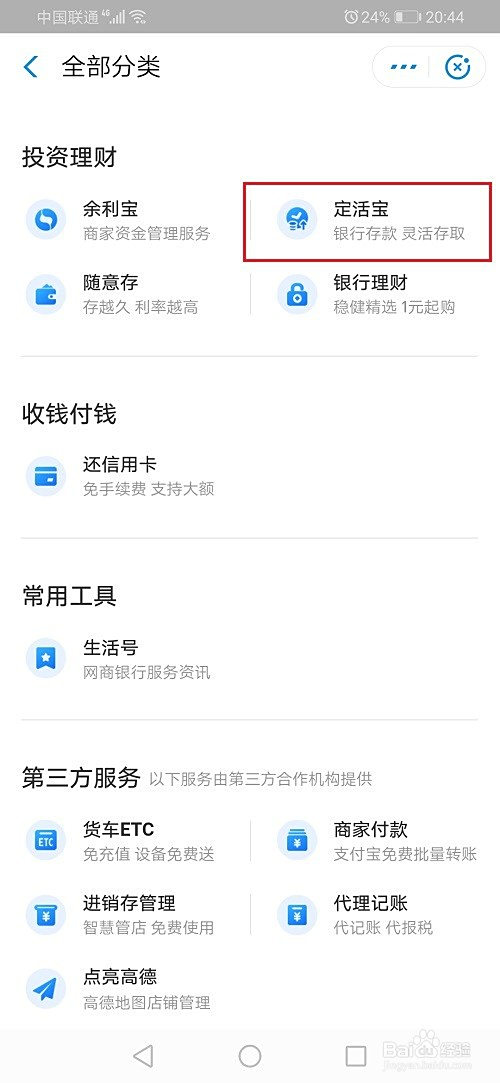 第二步在全数中找到定活宝,点击进去,如下图所示: