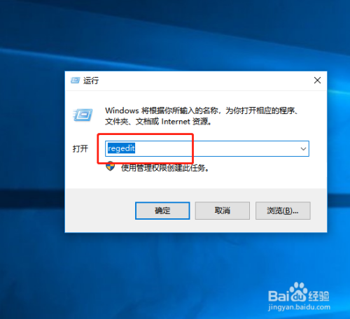 我们先同时按下win+r键进入运行,然后输入regedit进入注册表,如图。