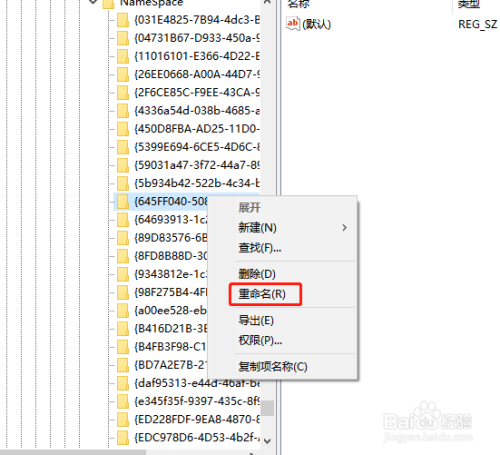 新建之后,我们把重定名下,改当作{645FF040-5081-101B-9F08-00AA002F954E},如图。