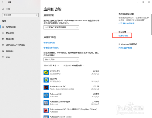 在设置界面,选择程序和功能,点击完当作.如下图所示.