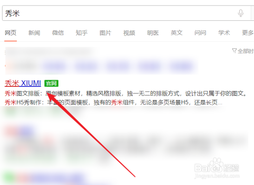 ①打开电脑浏览器,搜刮【秀米】并点击官网链接。