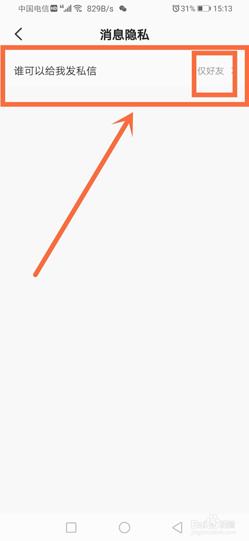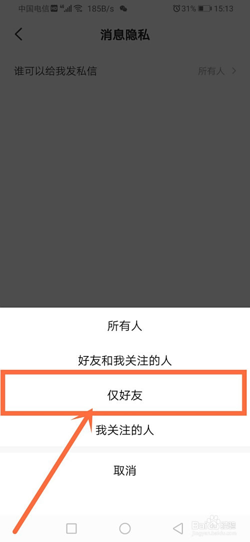 最后,看到谁可以私信我的后面显示为仅老友即可。如下图所示