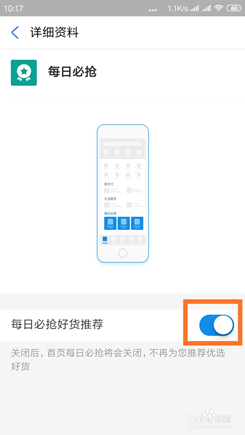 点击每日必抢好货保举右侧的功能开关,封闭该功能即可