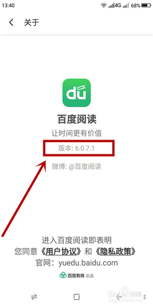 进入【关于】页面后,就可以查看到百度阅读的版本了