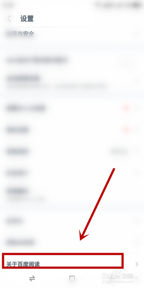在【设置】页面最下一行,找到【关于百度阅读】选项单击