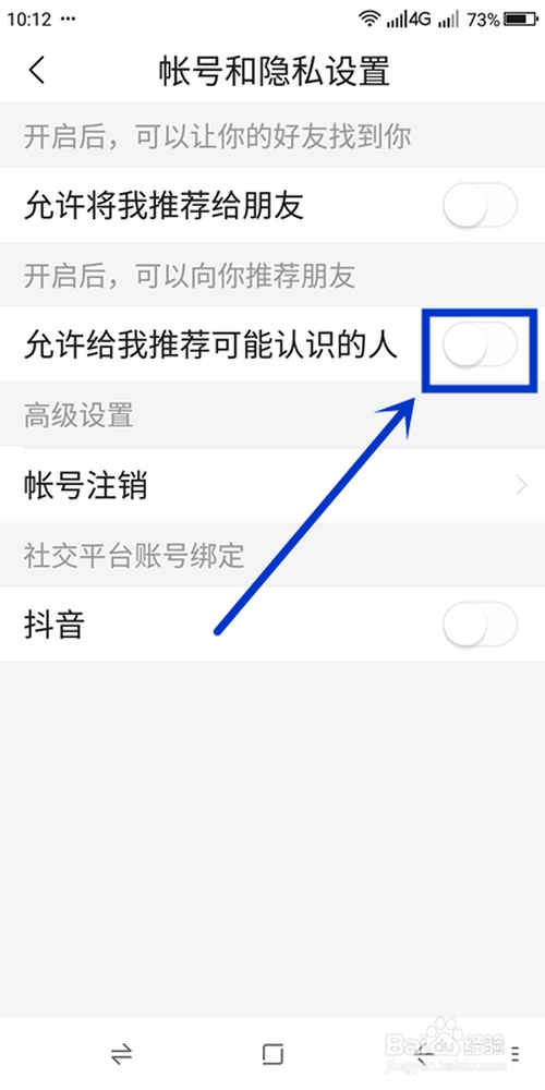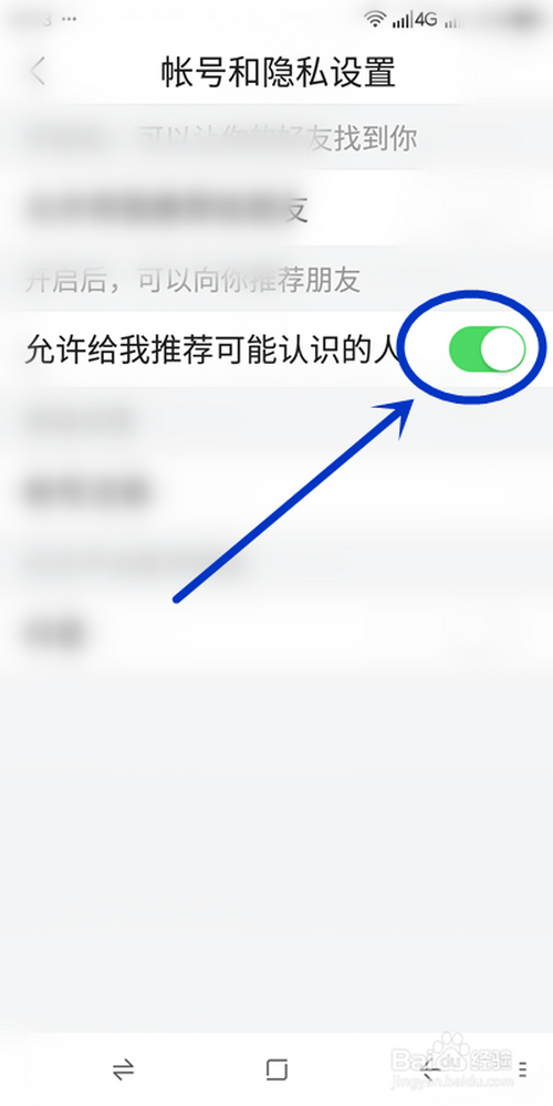 在【账号和隐私设置】页面,找到【许可给我保举可能熟悉的人】选项,该选项功能此刻是封闭的