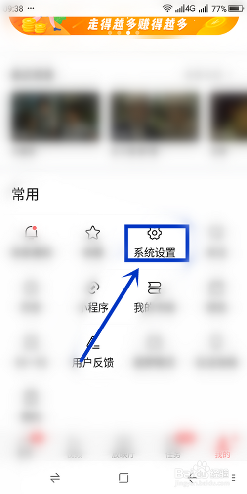 在页面中心找到【常用】选项组中的【系统设置】选项单击