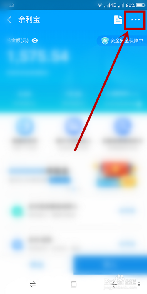 4、进入【网商银行 余利宝】页面后,单击右上角的【...】图标