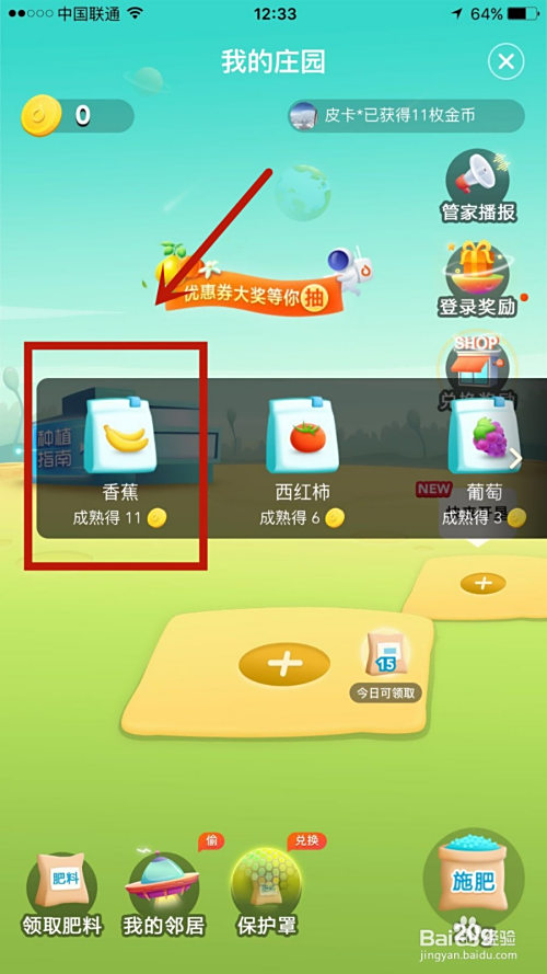 点击上本身要莳植的果蔬(这边以喷鼻蕉为例)。