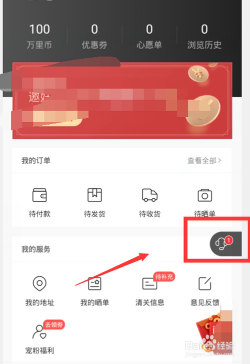 第二:在小我中间面板选项点击右下角的【耳机】按钮联系客服。