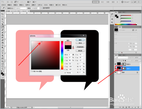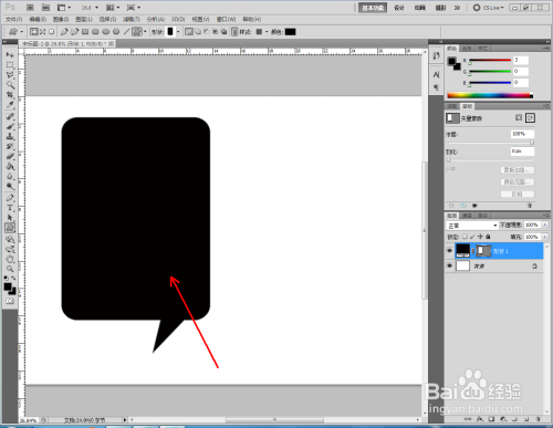 选择台词框选项栏中纵标的目的会话台词框,绘制出纵标的目的会话台词框。