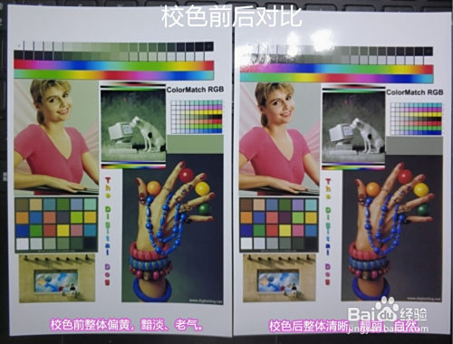 下图来历于真实的校色案例,经由过程比对校色前后的打印照片,可以看出来校色前的打印照片整体偏黄、黯淡、老气,而校色今后的照片,整体清楚、靓丽、天然,色彩获得了很是大的改善。