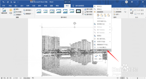 第四步:将鼠标移至照片处,点击鼠标右键,选择【设置图片格局】