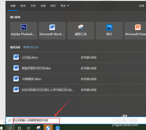 点击电脑屏幕左下角的【搜刮】图标。