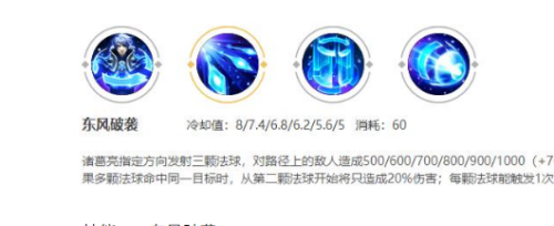 诸葛亮的二技术为诸葛亮的独一位移技术。并且是可以储存的,最多储存三次。无论是在逃生或者追击收割都起到至关主要的感化。