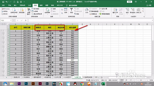 5.这是因为金额的数据是数字格局,其他的是文本格局所以无法汇总显示。
